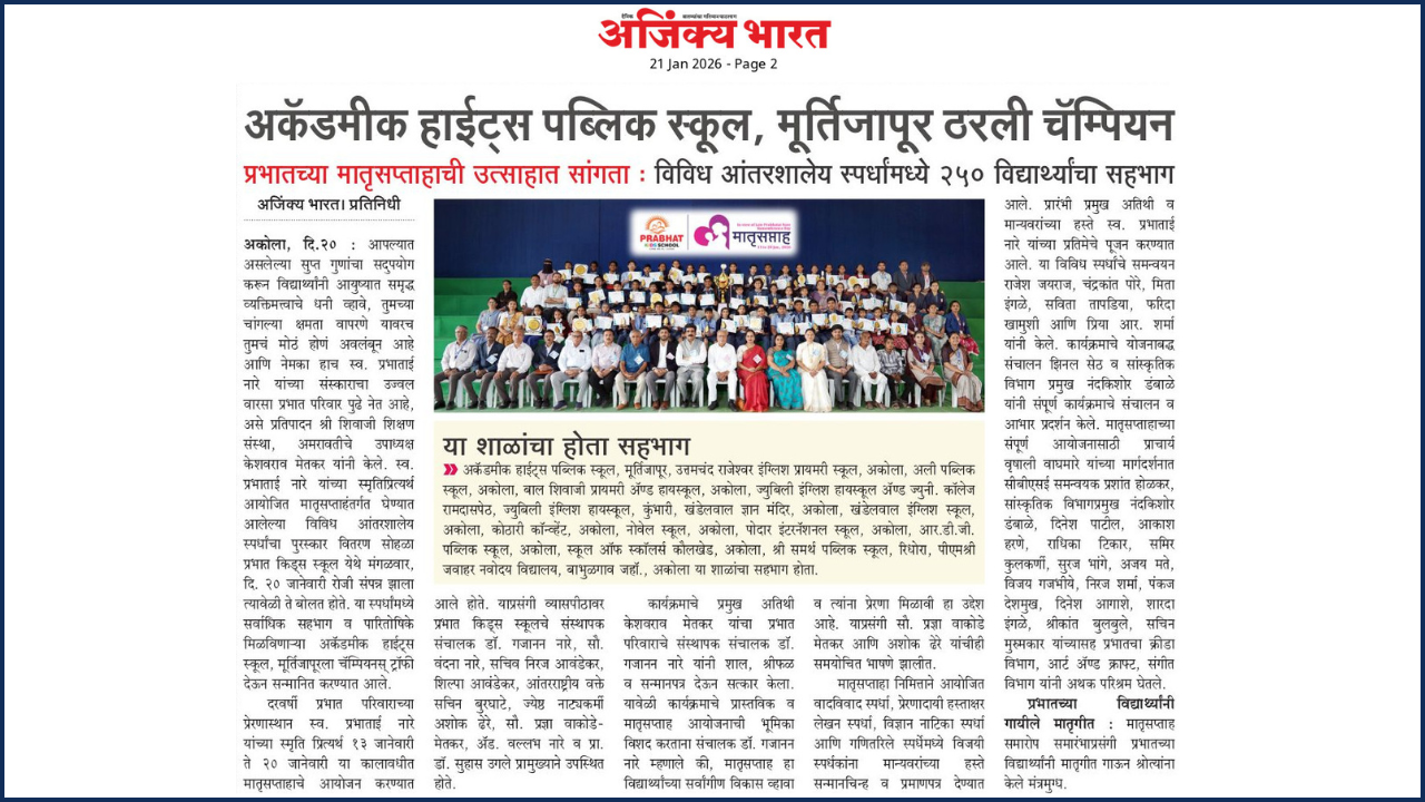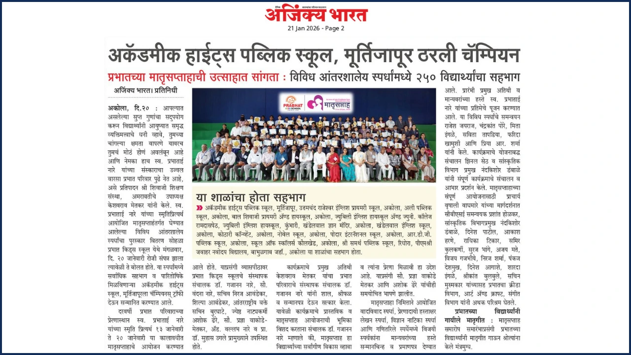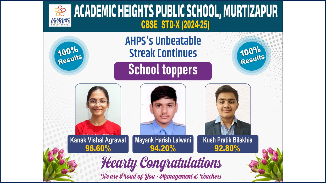 Our Achievements reflect the dedication, perseverance, and excellence of our students and faculty. From outstanding academic results to remarkable accomplishments in sports, and extracurricular activities, our school takes immense pride in every milestone achieved. Each success story is a testament to hard work, determination, and the strong foundation of values we nurture. Whether it is winning prestigious competitions, or securing top ranks in examinations, our students continue to make us proud. These achievements not only highlight individual brilliance but also showcase the collective spirit and commitment of our entire school community toward excellence.